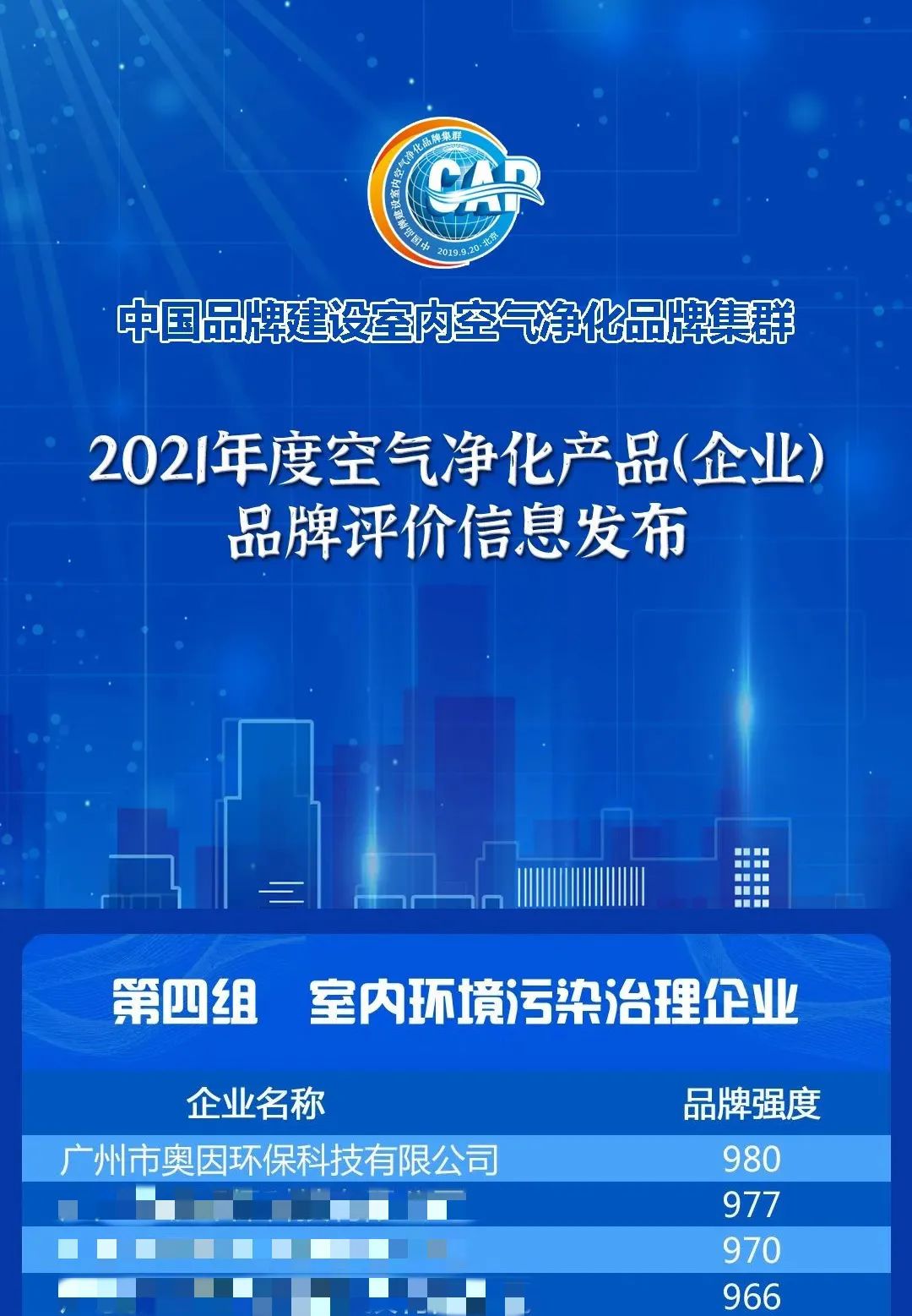 2021榮獲“室內環(huán)境污染治理企業(yè)”品牌評價排名第一