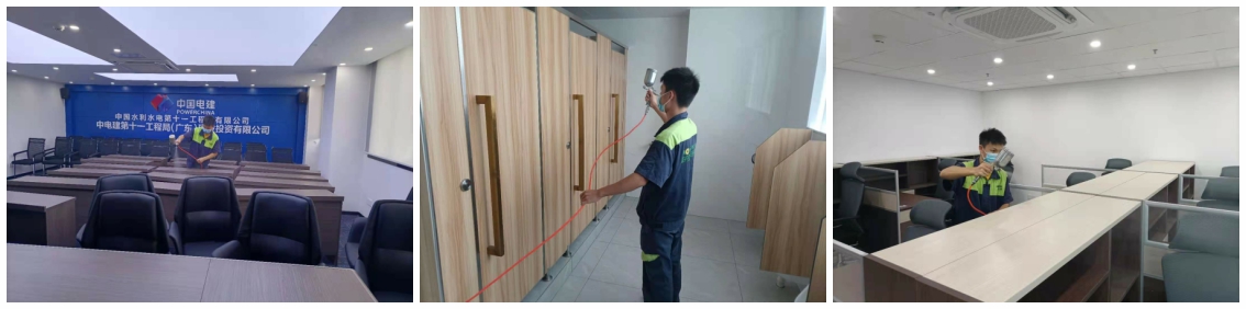 中電建第十一工程局(廣東)建設投資有限公司新辦公室裝修完成,辦公室文件柜等大多以人造板為主,如刨花板、三合板等,這些材料中都含有一定的甲醛、甲苯、二甲苯等毒害性物質,長期下來會對辦公室的空氣質量造成污染。為了員工的身體健康選擇了行業(yè)資深的室內空氣治理公司 奧因環(huán)保進行治理!